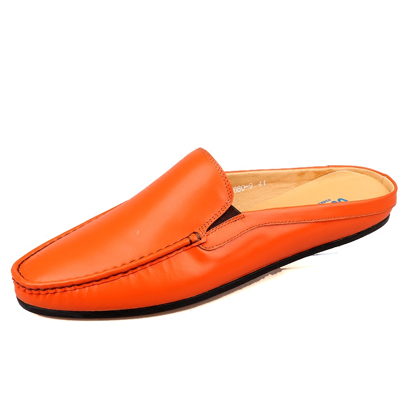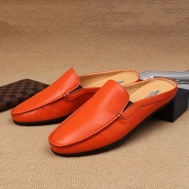 Summer Baotou leather half slippers men's peas slippers without heel leather shoes British sandals trendy casual loafers
