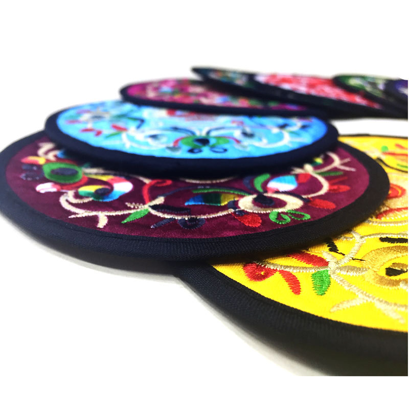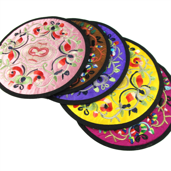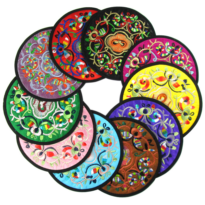 Large Number Embroidery Cup Cushion 20cm Ethnic Wind Embroidery Cup Cushion Coffee Tea Heat Insulation Mat China Craft Gift Pendulum Decoration for Old Foreign