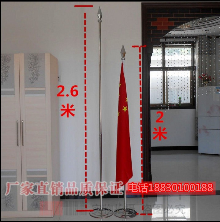 Flagpole Office Stainless Steel High Grade Silver Gun Head 2m 6 Par Conference Party Flag Retractable Flagpole Customizable
