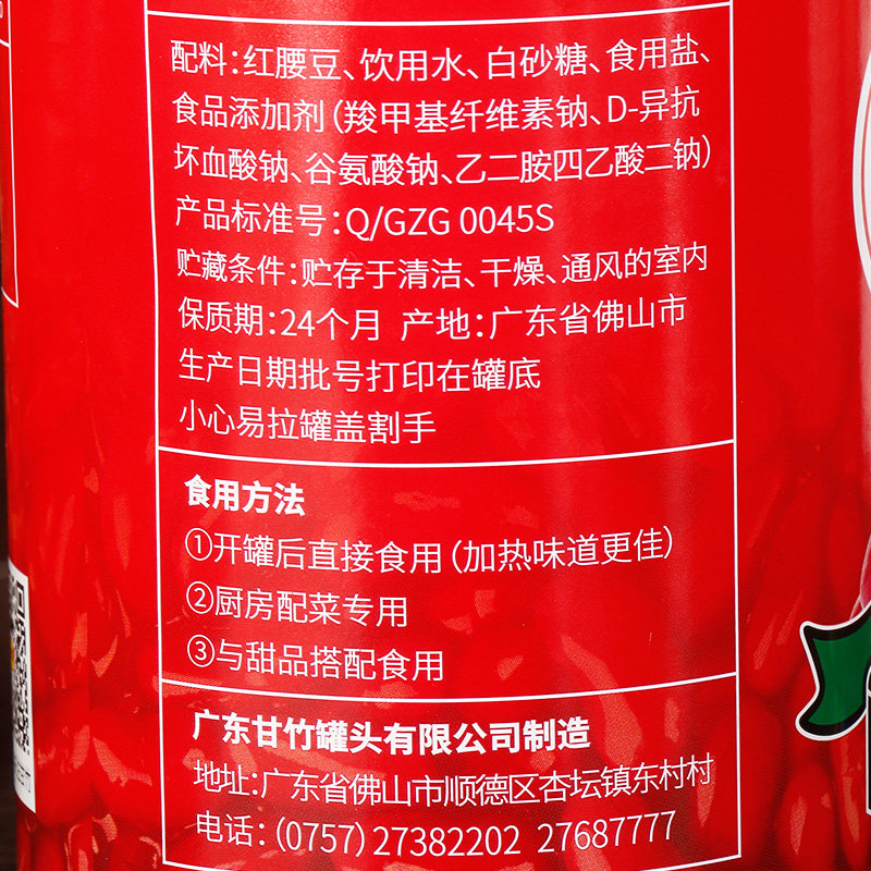 Red kidney bean drinking water, white sugar, edible salt, food additives (carboxymethyl cellulose sodium, D-sodium erythorbate, sodium glutamate), etc. The actual information on the product packaging shall prevail