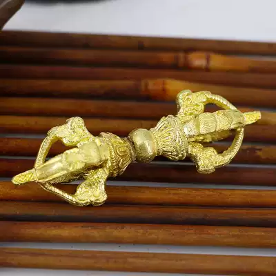 Buddha hall decoration Buddha tools Nepalese handmade diamond bell pestle dharma instrument Pure gilt copper five-stock diamond trumpet