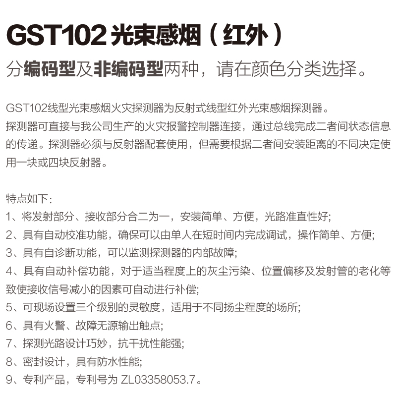 HF-GST102 Non Coding Type Beam Sensation Smoke HM-GST102 Coding Type Beam Sensation Smoke Reflex plate 50 m to beat 2 blocks 100 m for 4 blocks