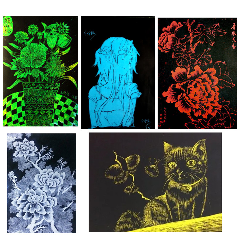 Monochrome pure shaved paper scraping paper red yellow blue blue and green 8K 8 open children painting paper gold 50