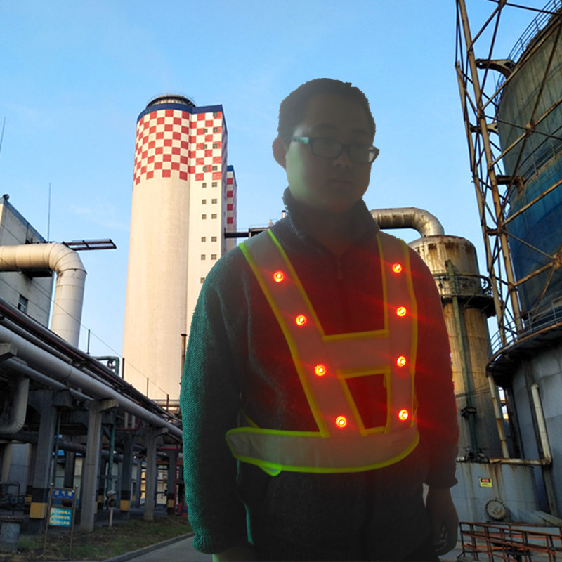 With flashing lights LED reflective vest V-shape construction waistcoat traffic safety suit waistcoat Machia print