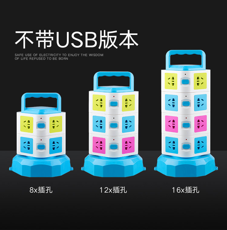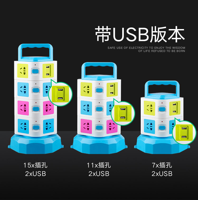 Creative vertical socket with USB charge plug wire Household plug multi - port plug multi - function extension line