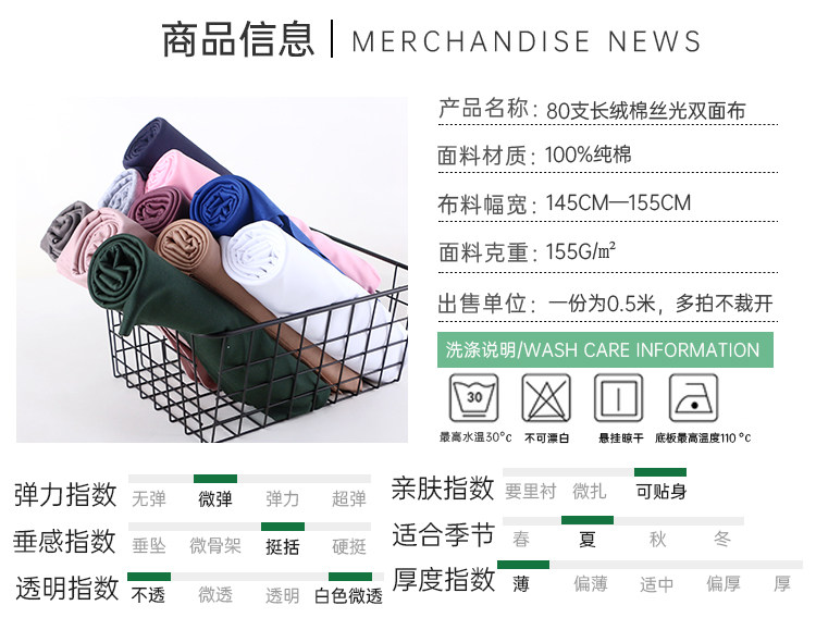 High-grade mercerized fabric double-sided short-sleeved T-shirt knitted fabric cotton light and thin luster soft DIY Xinjiang long-staple cotton