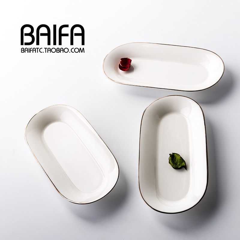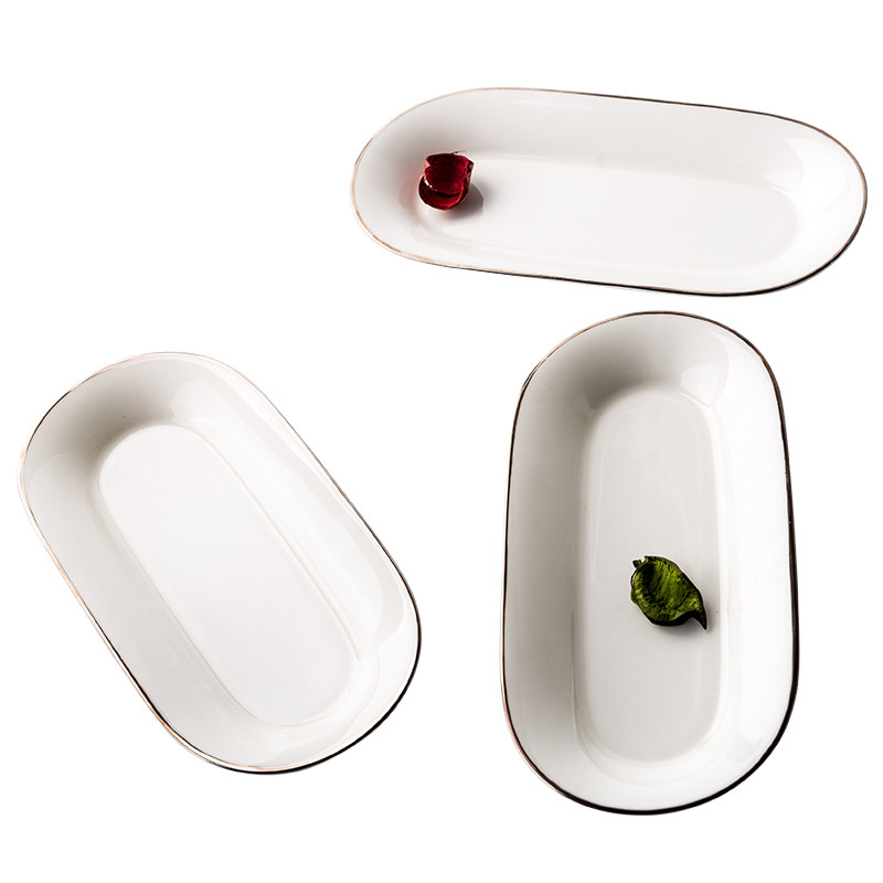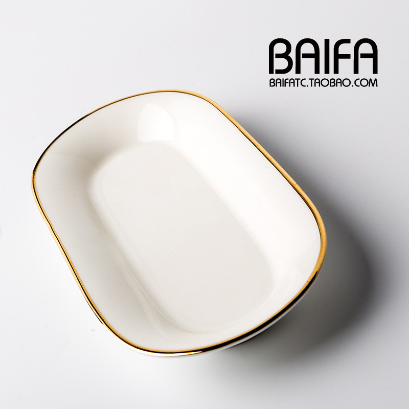 Oval rectangular ceramic towel plate platinum rim towel holder bone china hand towel plate wet wipe plate hotel soap box
