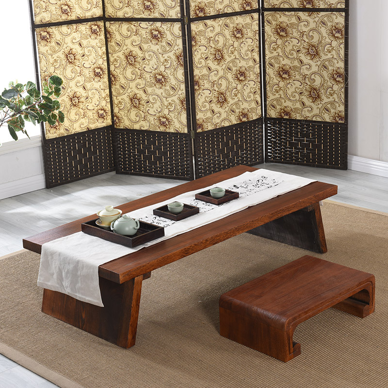 Burning Tung Wood Solid Wood Two Legged Kang Table Floating Window Tea Table Tea Table Dwarf kang Several Strengthening of Eight-word Table