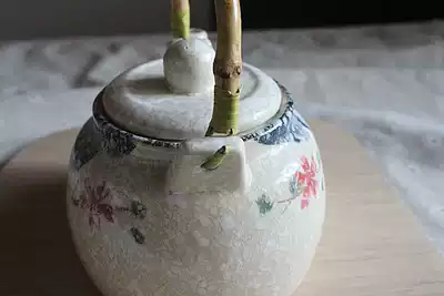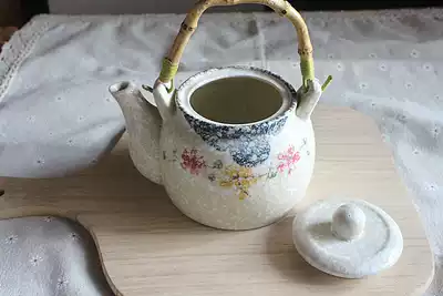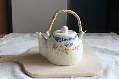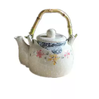 Green Maple LEAF CERAMIC TEAPOT KETTLE SNOWFLAKE Korean TEAPOT UNDERGLAZE COLOR HAND-PAINTED TEAPOT BAMBOO RATTAN HANDLE POT 650ML