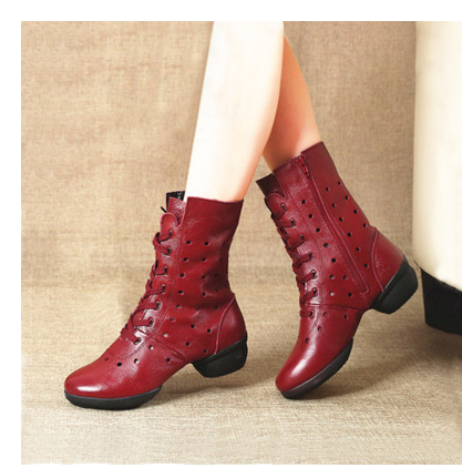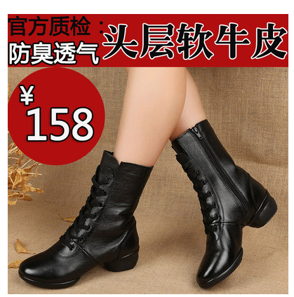 17 Spring and Autumn New Leather High Gang Square Dance Shoes Woman Increased Soft Solid Dance Boots Sailor Boots