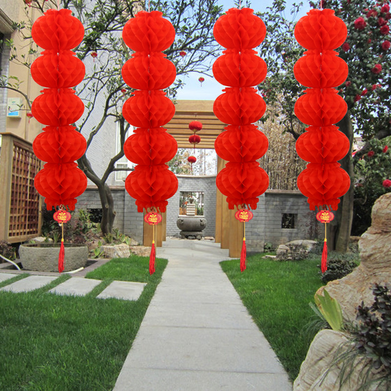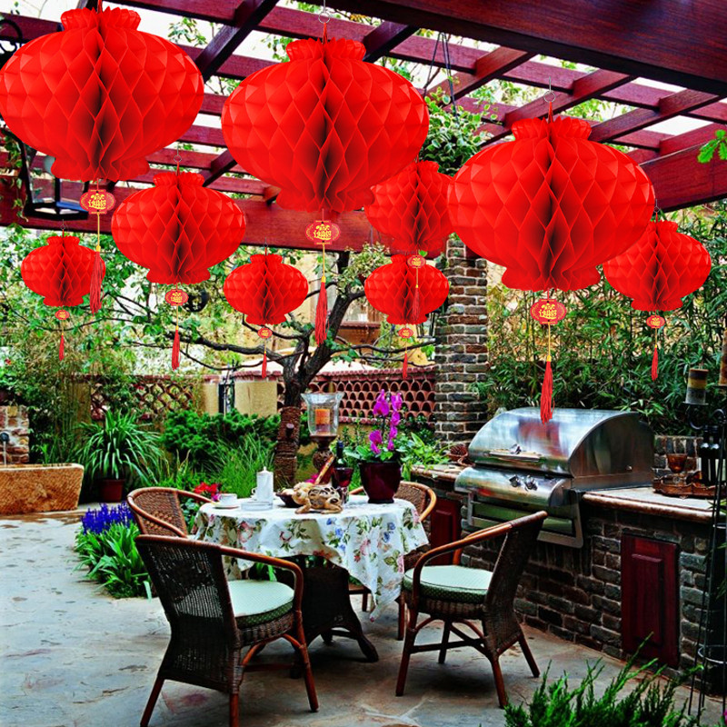 New Year's Day New Year's Day Spring Festival Big red plastic small paper lantern Wedding celebration Festive holiday opening decoration honeycomb lantern wholesale