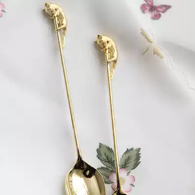 304 stainless steel English afternoon tea gold-plated stirring spoon long handle creative cute coffee spoon Gold dessert spoon