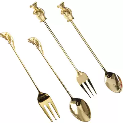Golden Cat Snack fork 11 5cm Golden Bear snack fork 13 8cm Golden Cat Coffee spoon 11 5cm Golden Bear Coffee spoon 13 8cm