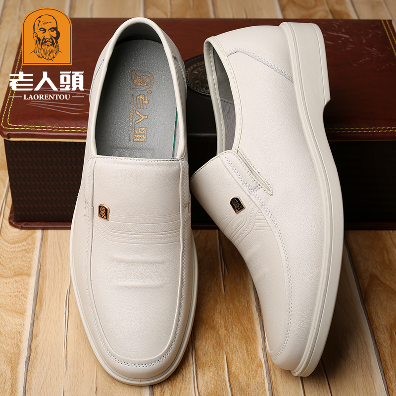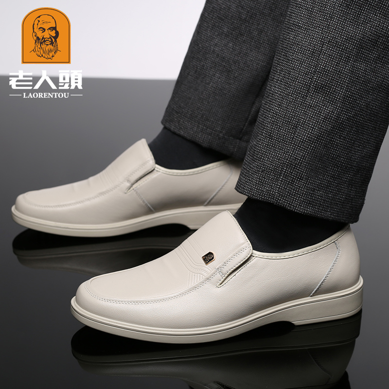 Old man's head men's shoes summer leather shoes men's leather breathable casual beige leather shoes middle-aged and elderly soft-soled dad shoes