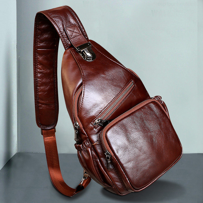 Men's Chest Bag Genuine Leather Pure Cowhide Casual Wide Shoulder Strap One Shoulder Crossbody Bag First Layer Leather Crossbody Shoulder Bag Oblique Cross Men's Bag
