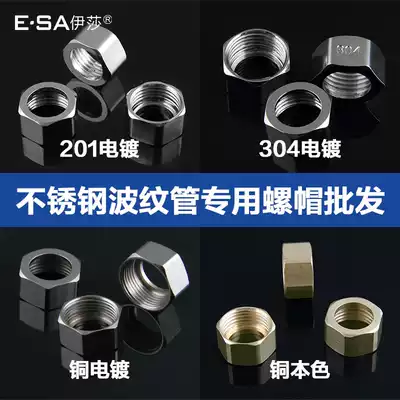 304 stainless steel national standard corrugated pipe matching nut stainless steel copper chrome-plated nut 4 points 6 water distribution pipe fittings