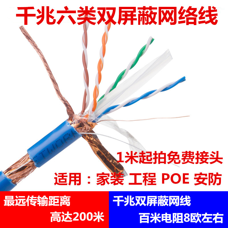 Pure copper super six dual screen shield Gigabit network cable Household high-speed oxygen-free copper computer monitoring network cable 300 meters disk