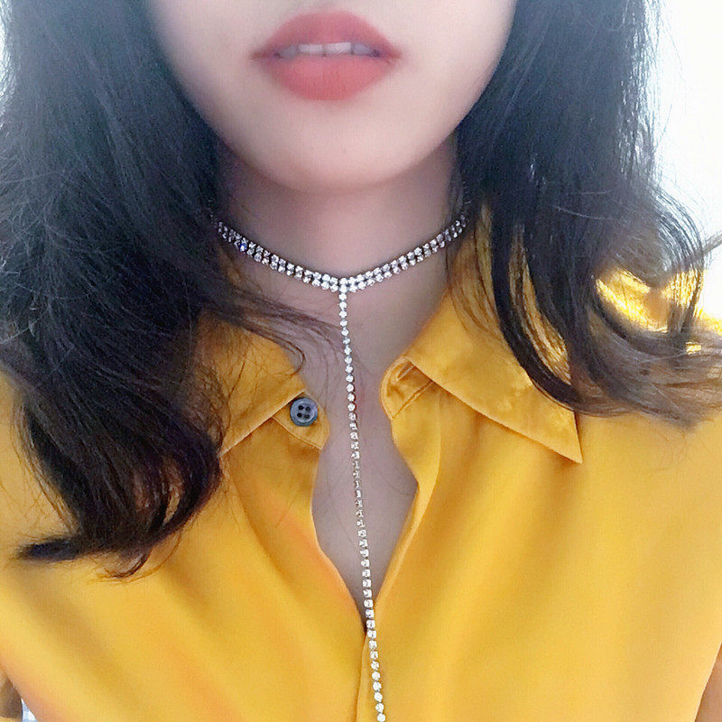 European and American fashion sexy nightclub full diamond chain T-neck chain long tassel clavicle chain necklace necklace sweater chain