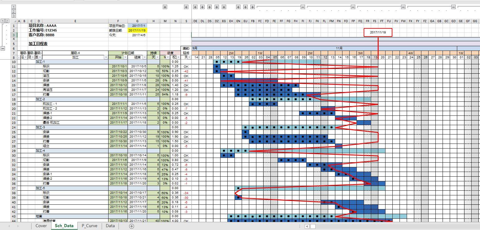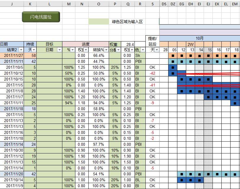 Excel Gantt Chart Tool Schedule Gantt Chart Plan with Lightning Line drawing macro Full-featured
