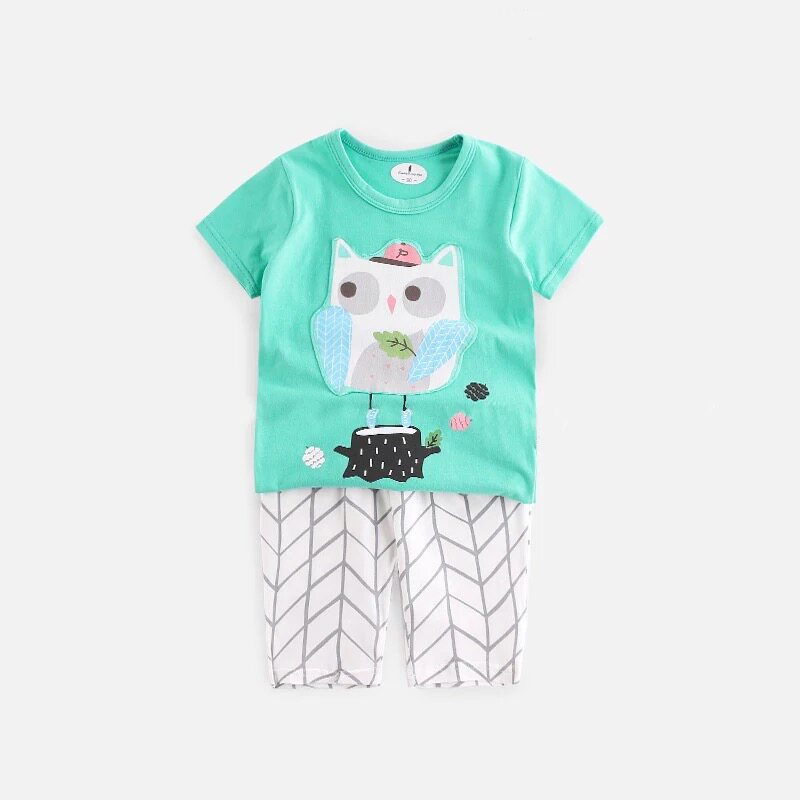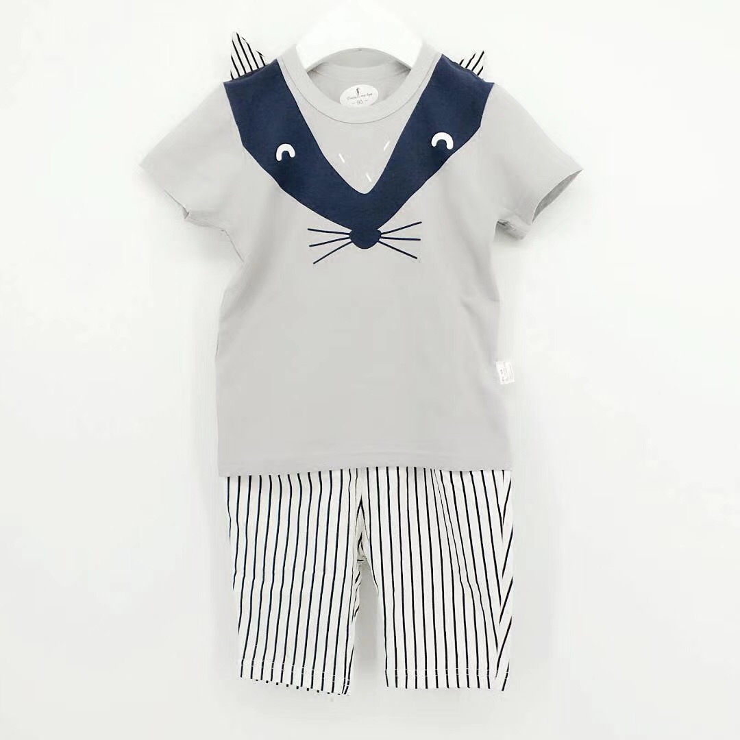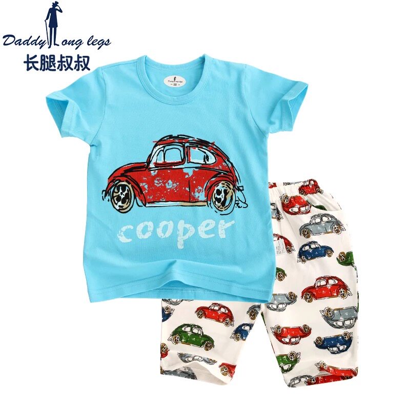 Qing summer pure cotton long-legged uncle children's home clothes suit new boys and girls short-sleeved pajamas