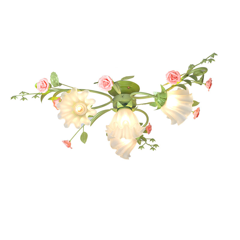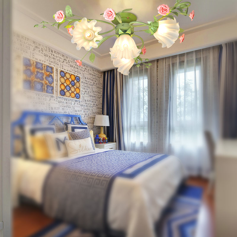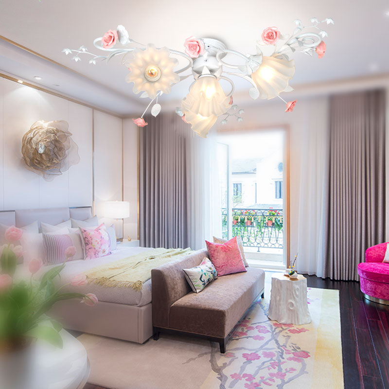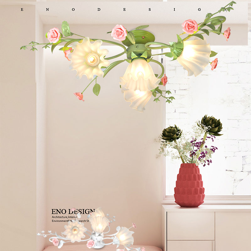 Han Style Fields Garden Flowers and Grass Ceiling Lights Romantic Cozy Living Room Bedrooms Iron Art Ceramic Flowers Girls Room Floral-Taobao