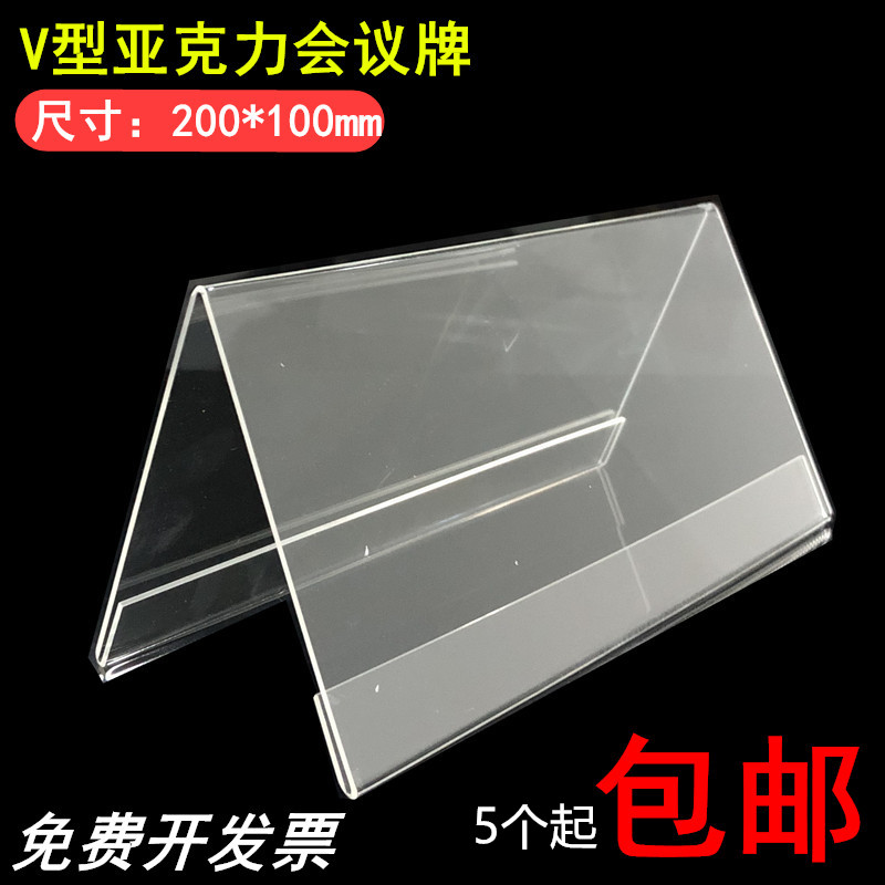 V-shaped acrylic transparent triangle conference card seat card Double-sided table card table card table card seat card 200*100 double-sided name card Table card display card Judge name card (5)