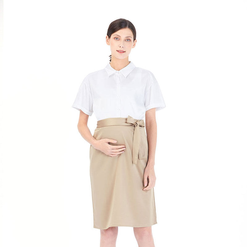 High-quality satin long-sleeved maternity shirt-style dress summer professional OL intellectual breastfeeding skirt suit spring and autumn interview dress