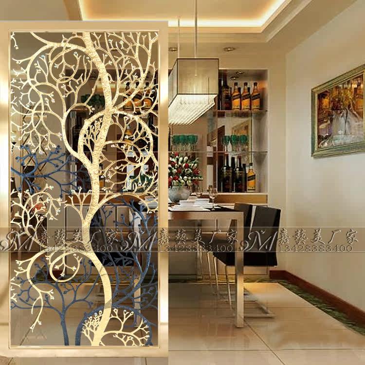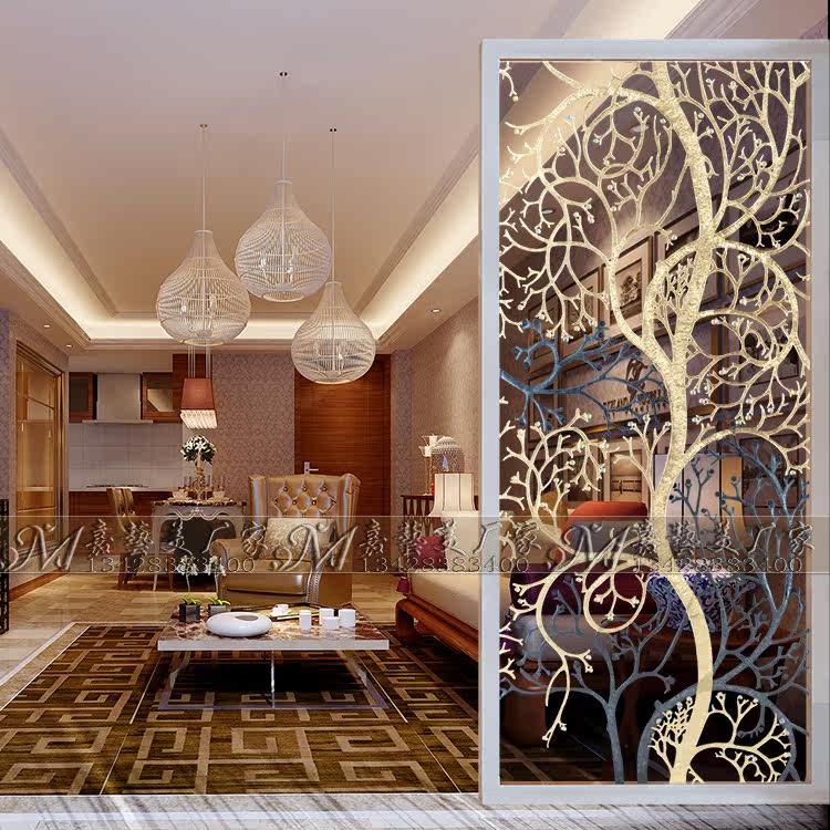 European art glass screen porch background wall living room decoration double-sided frosted carved partition modern fortune tree