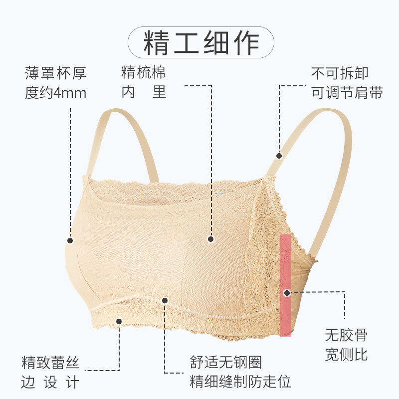 No steel ring Breasted Bra Women Lace Underwear Bottom large breasted with small thin section Anti-walk light wrap chest summer cotton