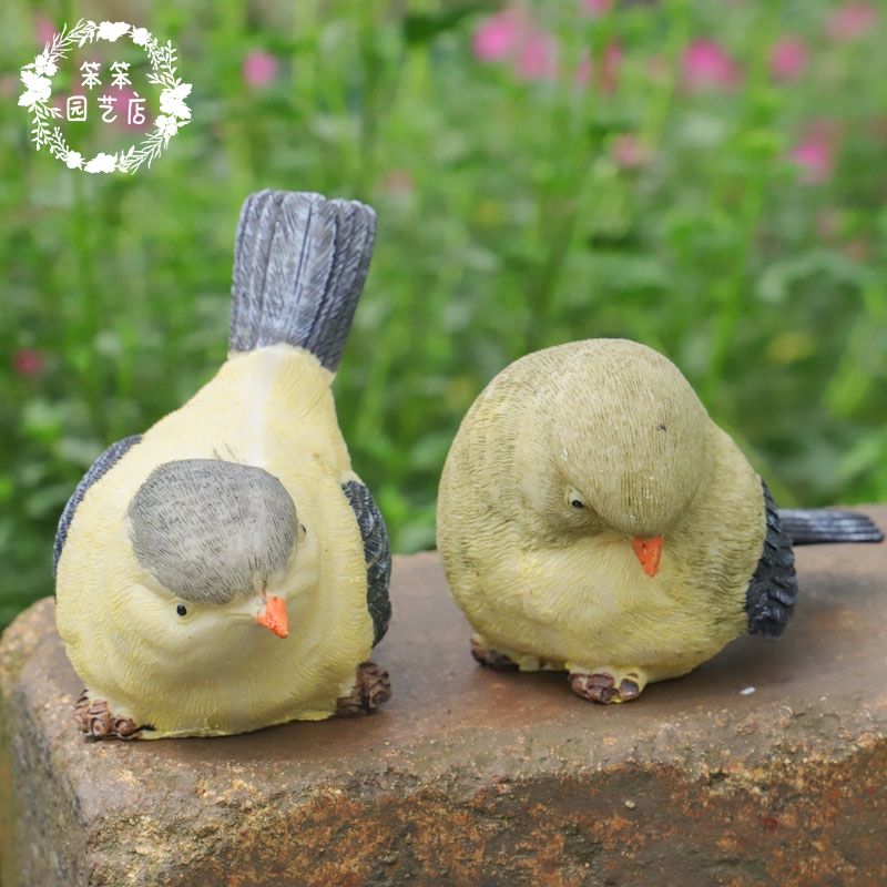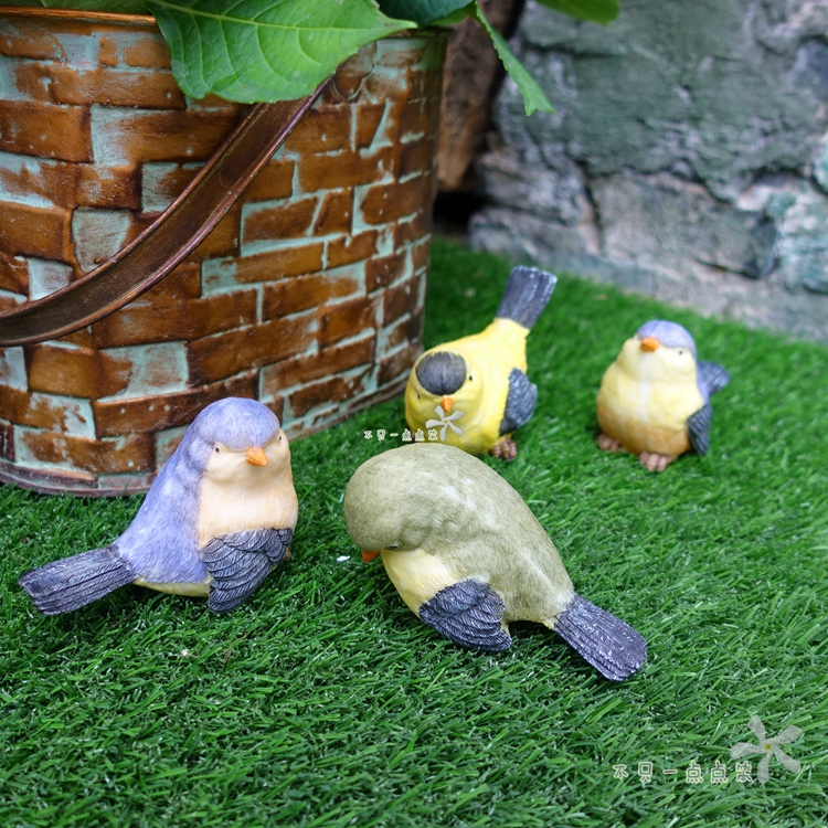 Resin Color Birds Set of Four Sparrow Ornaments Lawn Flower Pots Decorative Animals