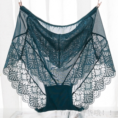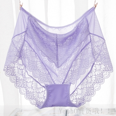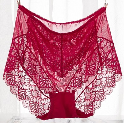 Full lace plus size panties feminine full transparent perspective fun sulture plus fat mm 200 pounds ultra thin