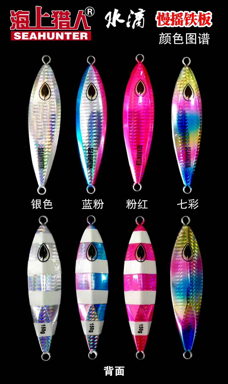Sea hunter water drop deep sea boat fishing laser slow shake luminous iron plate bait 100G150g200g250g