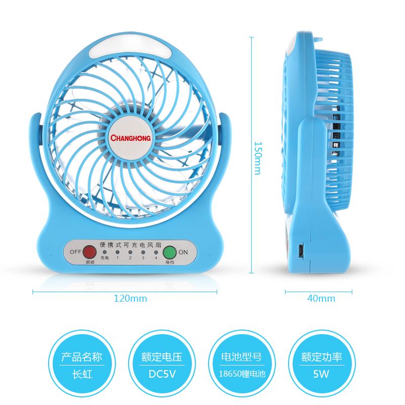Changhong USB small fan Mini hand-held rechargeable desktop lithium battery portable fan Student dormitory office