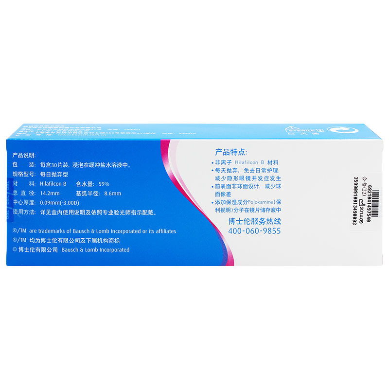 The same style as Hualu] Bausch & Lomb myopia contact lenses daily disposable Qinglang 30 pieces imported flagship store official website
