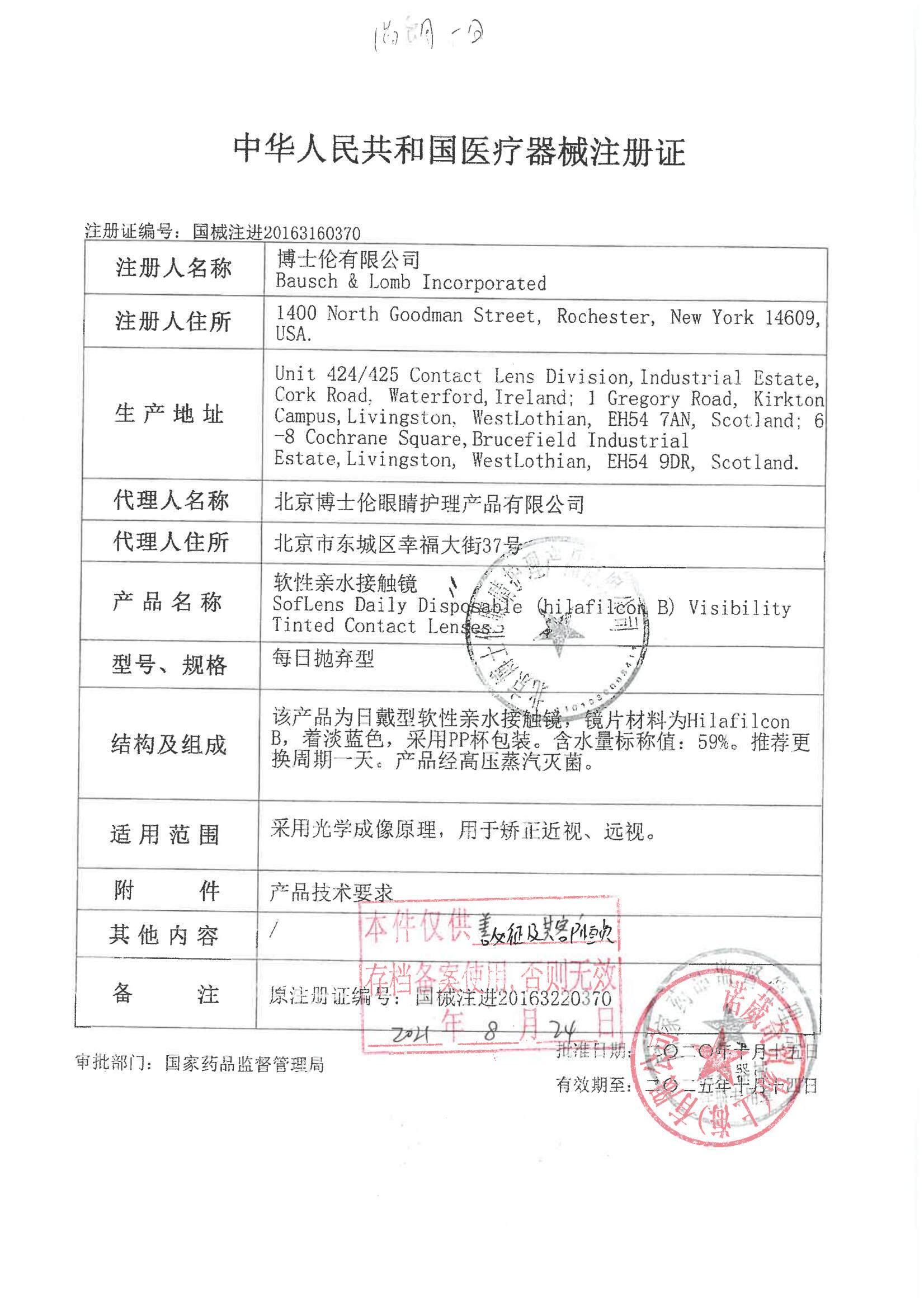 Contact lens and care solution product name: