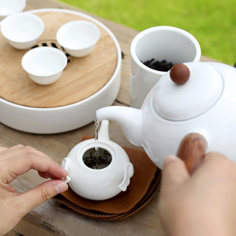 Tenxiang Tea Set Group 700ml Junton Pot (with strainer) 700ml Jungling pot (with strainer) Round white black crystal stove Tengxiang tea set Set 700ml Accommodating Kettle (with strainer)