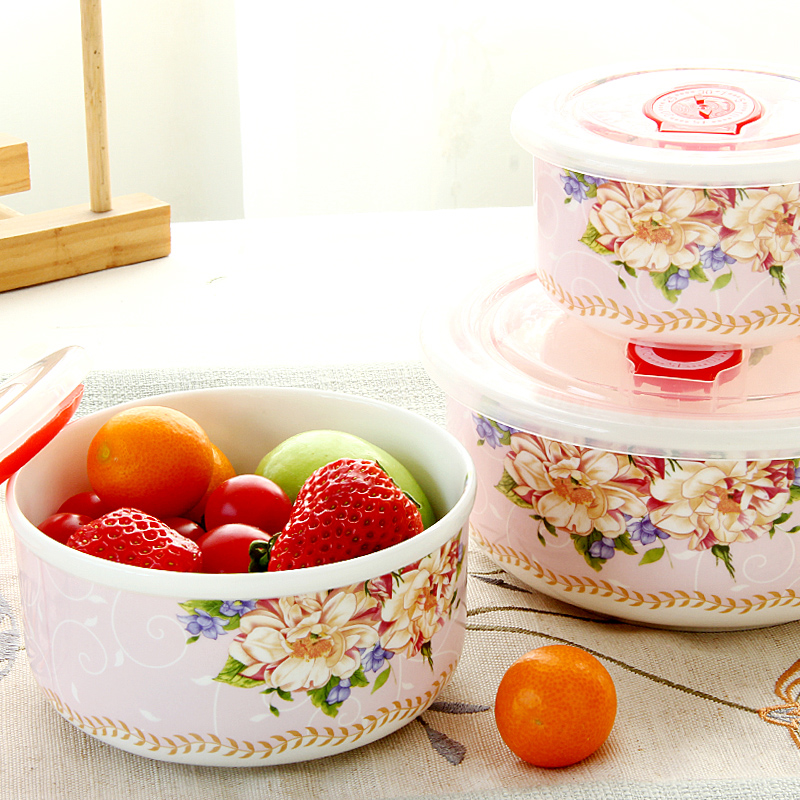 Microwave oven bowl three pieces with cover ceramic dishwasher bowl with cover bowl