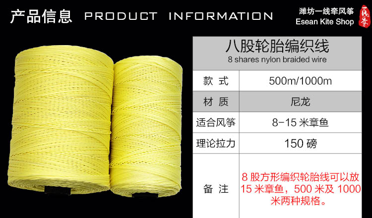 Large kite line 500 meters 8 strands braided 1000 meters tire line flying eight strands of net rope Weifang first line lead