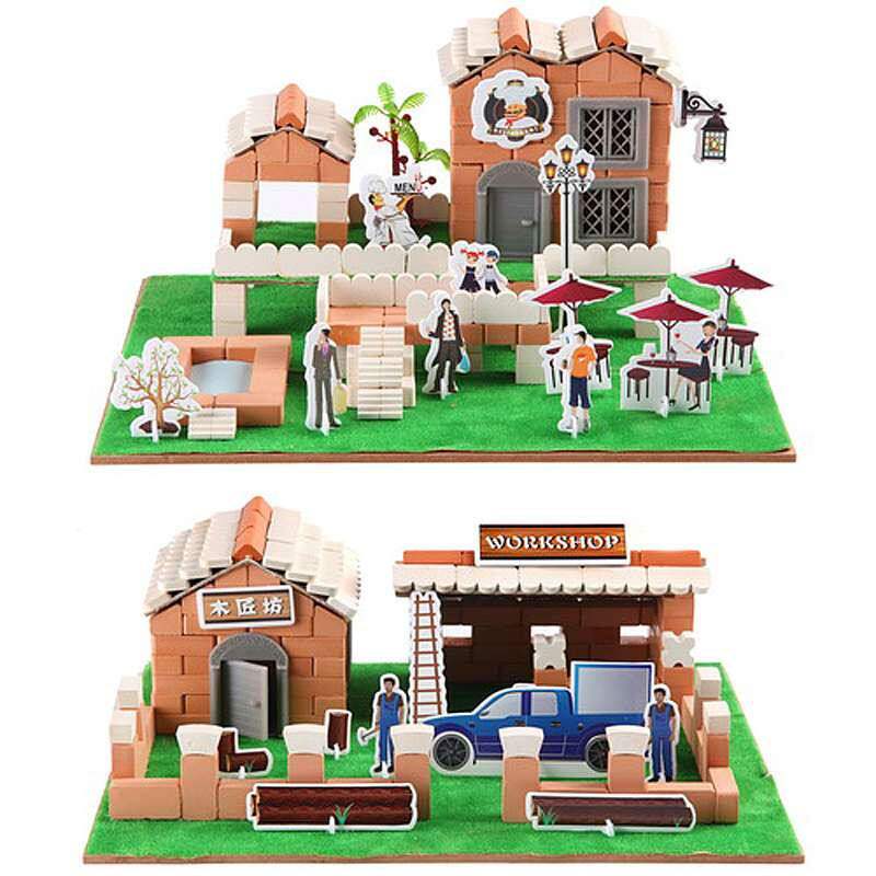 Lotte Ceramics Building Blocks House Children Puzzle Toy Building DIY Simulation Model Bricks Handmade Assembly Series