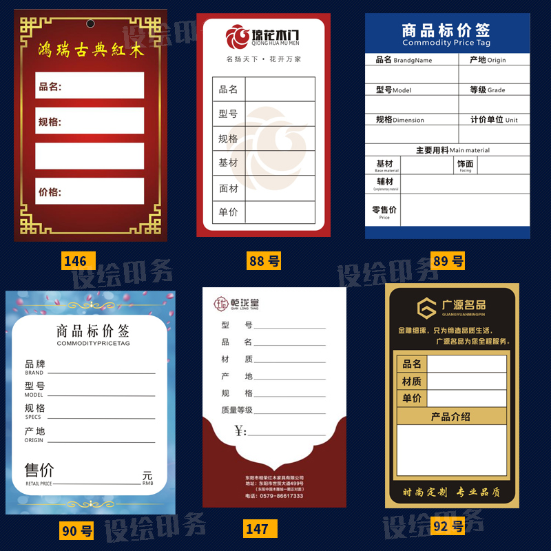 Price tag custom furniture price tag bathroom decoration home appliance building material commodity price tag paper display card custom