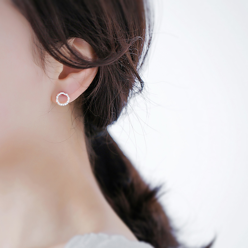 Pure Silver Small Circle Earshot Female Korea Temperament Net Red 2021 New Tide Earrings Round Water Drill Circle Ear Accessories