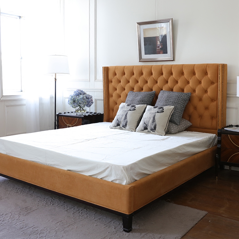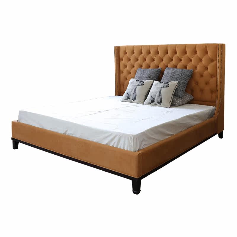 Simple modern orange double bed soft bag bedroom 1 5 8 m designer sample room small American button bedroom