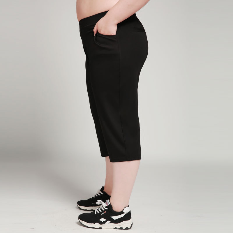 Large size elastic thin cropped pants women Korean version of summer clothes fat sister 200 catties loose plus fat and wide leg pants summer