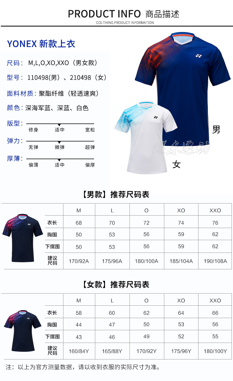 New YONEX Yonex yy badminton suit 110498 men's and women's quick-drying game team yy ball suit