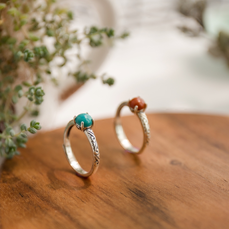 The scenery on the other side, exotic handmade, 925 sterling silver, turquoise, southern red, retro and old, open ring