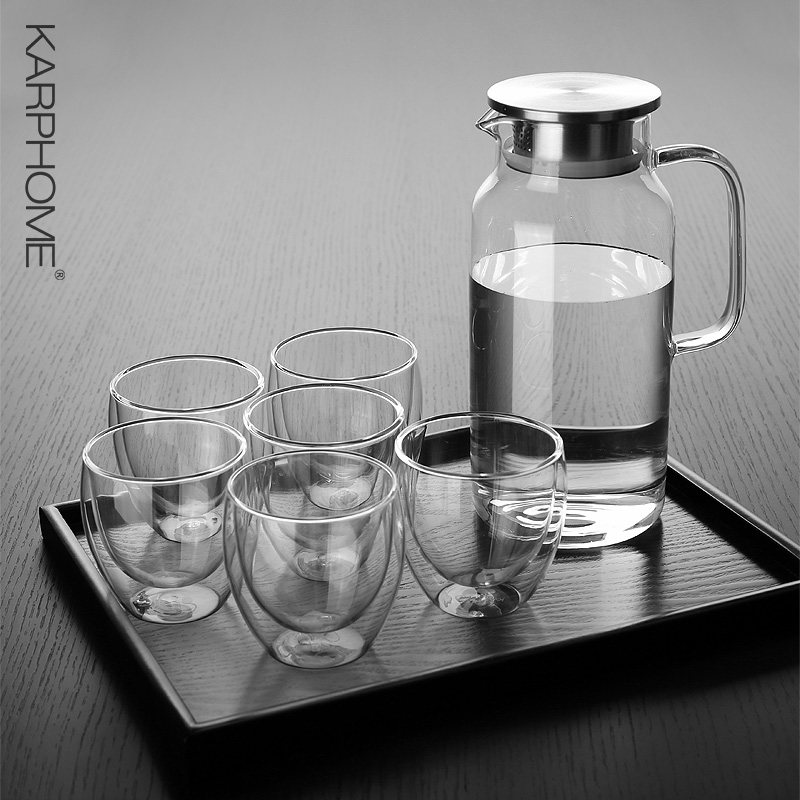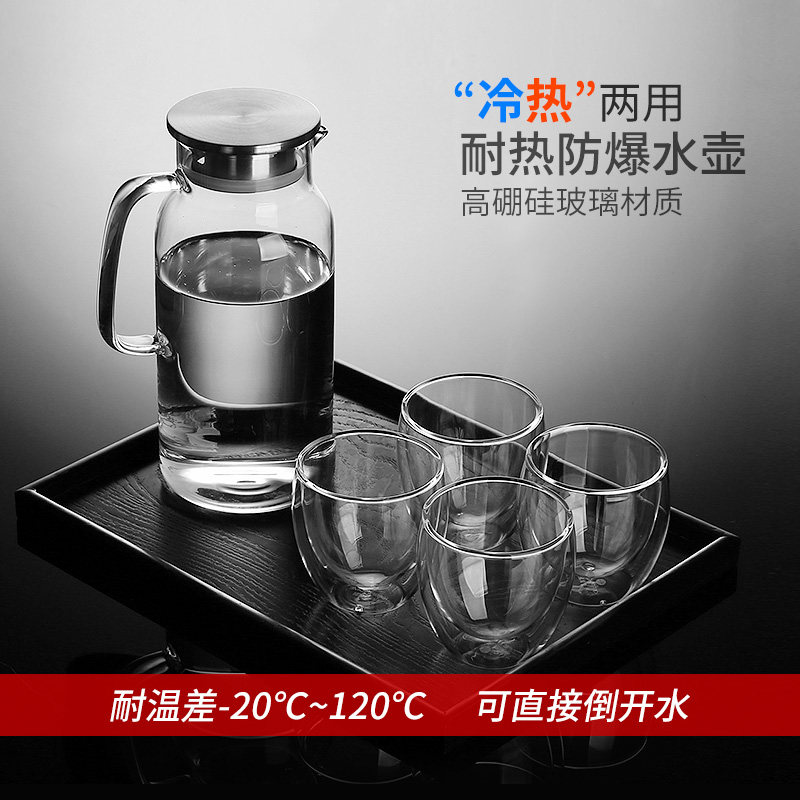 Cold water jug Large capacity juice cold water jug Cold water jug set Glass cup Household heat-resistant explosion-proof high temperature cup