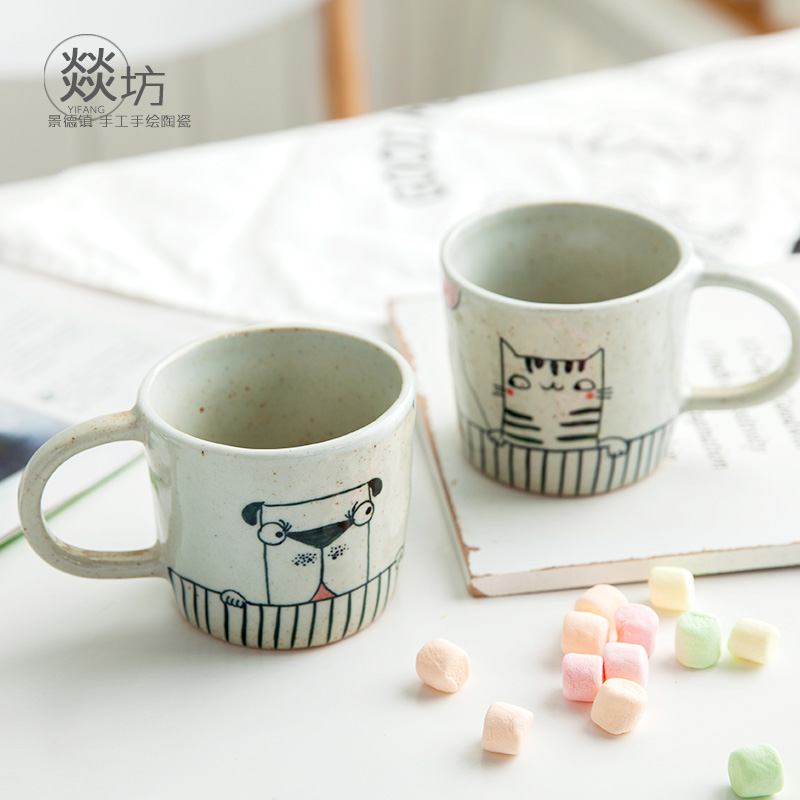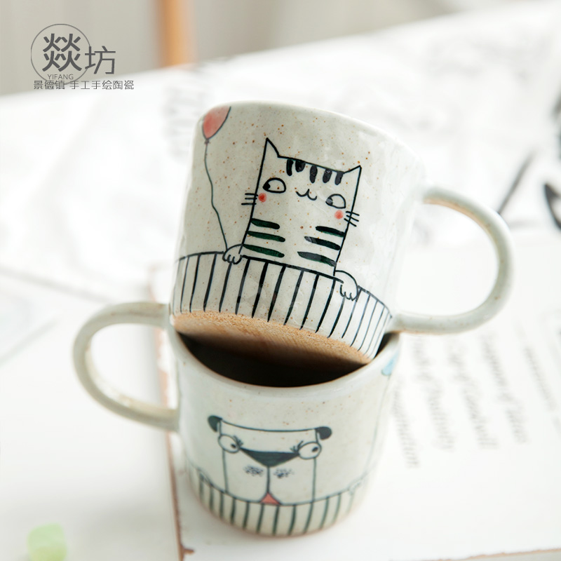 Creative Mark Cup Cartoon Ceramic Cups Coffee Mug Milk Cup Hand-painted Cute Cat Dog Cup Delivery Spoon