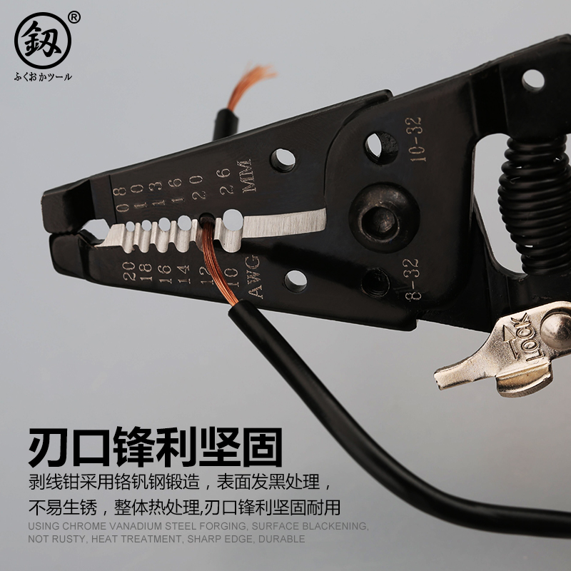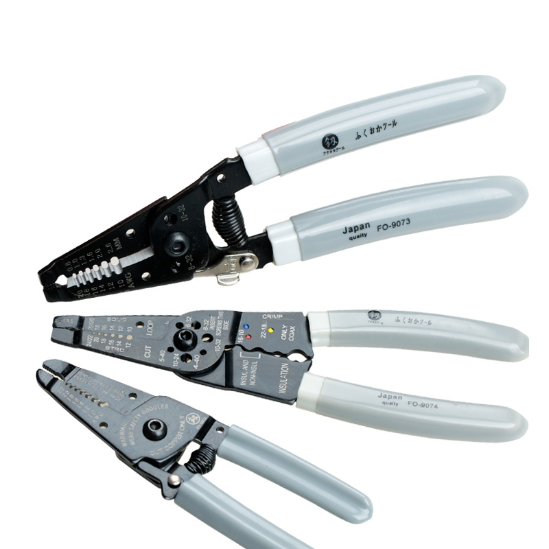 FO-9072 6 inch wire stripper FO-9073 7.5 inch wire stripper FO-9074 8 inch wire stripper FO-9017 6 inch three-segment Miller clamp FO-9018 7 inch fiber clamp FO-90197 inch large head wire stripper FO-9072B 6 inch wire stripper FO-9019A 7 inch stripping plier FO-9014 automatic stripping plier FO-9028A stripping plier 8 inch FO-9028B stripping plier 8 inch FO-9029 duckbill stripping plier 7 inch FO-9014B automatic stripping plier 7 inch FO-9076 stripping plier 4.5 inch