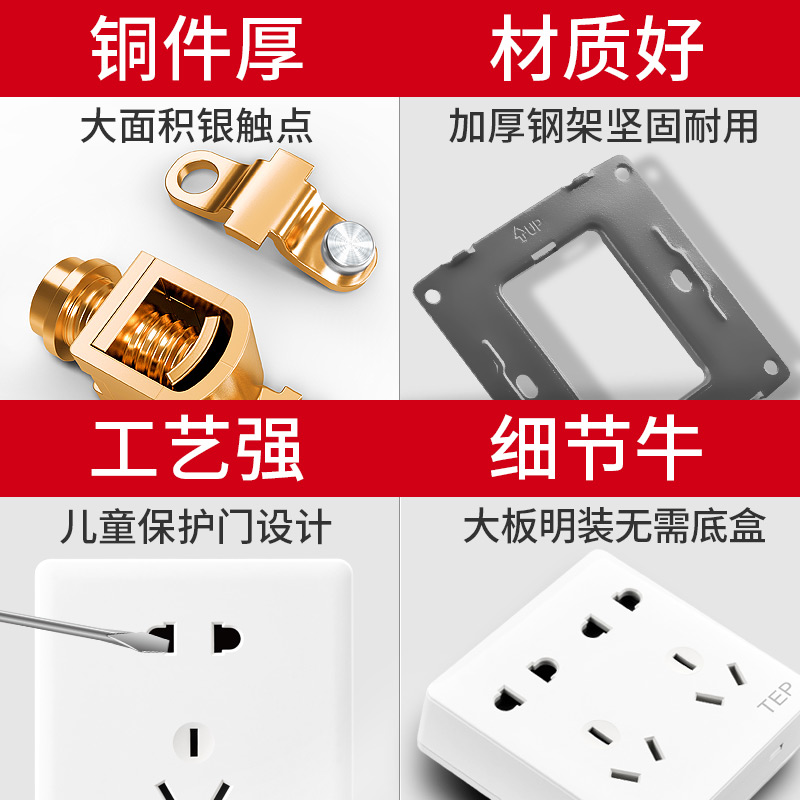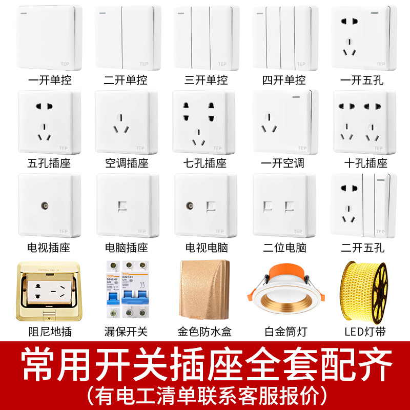 Rice white white transparent 5-hole socket 7-hole socket ten-hole socket 15-hole socket 16A air conditioning open single-control open single control two open single control triple open single control three open double cut open single control four open single