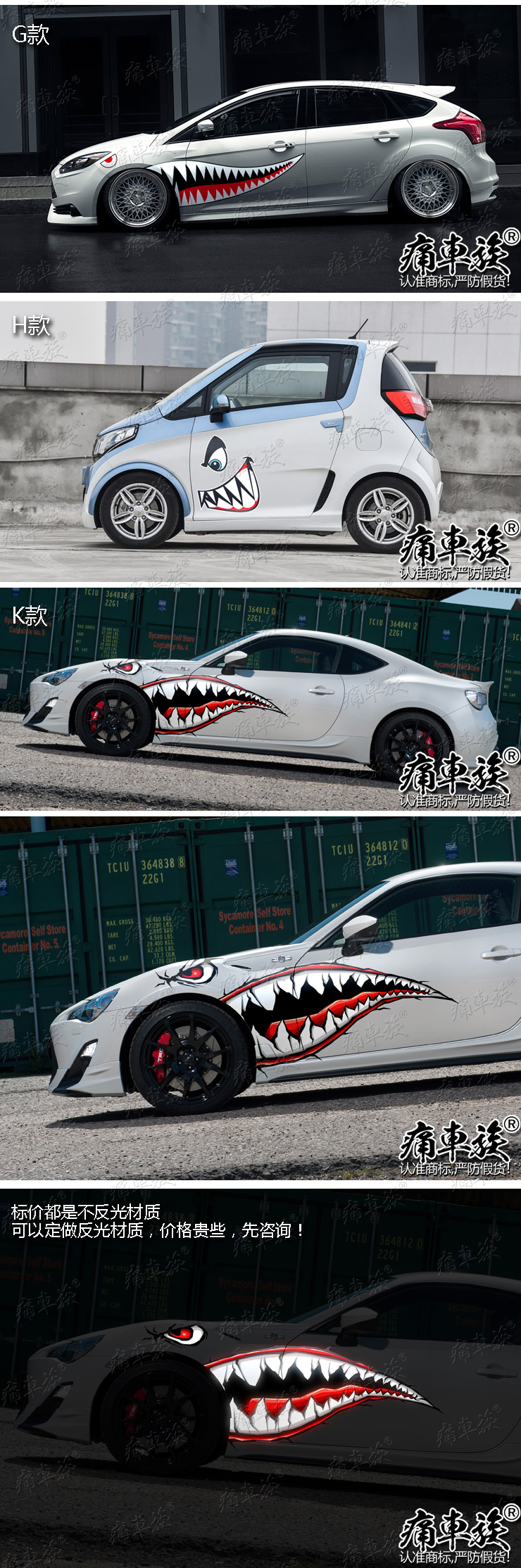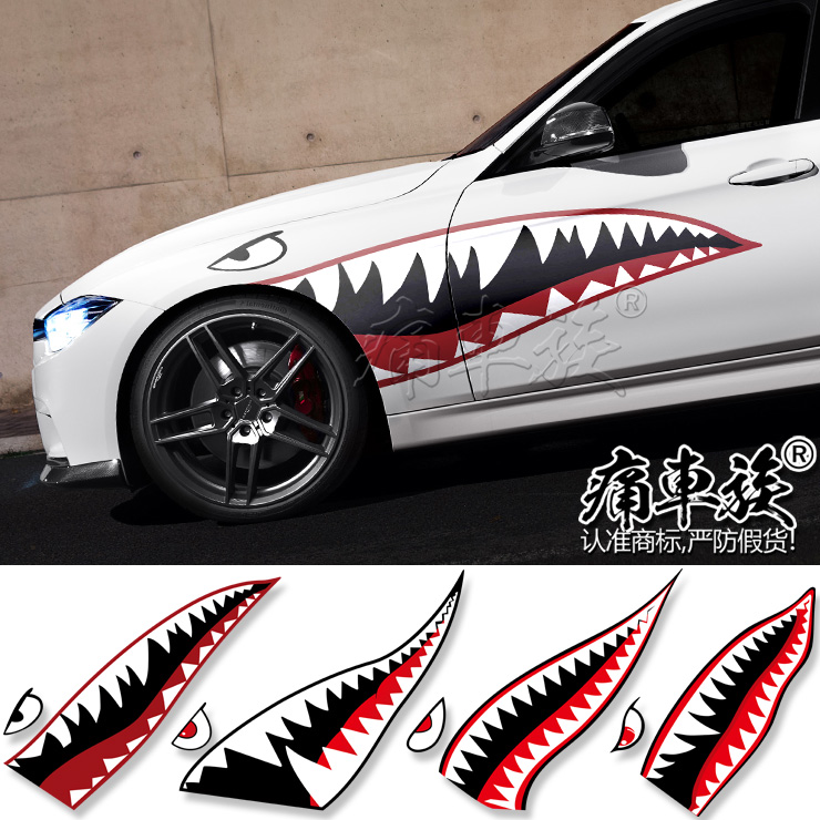 Body Sticker Flying Tigers Shark Mouth Car Sticker Flower Personality Creative Car Body Sticker Jaws Door Side Door Car Sticker